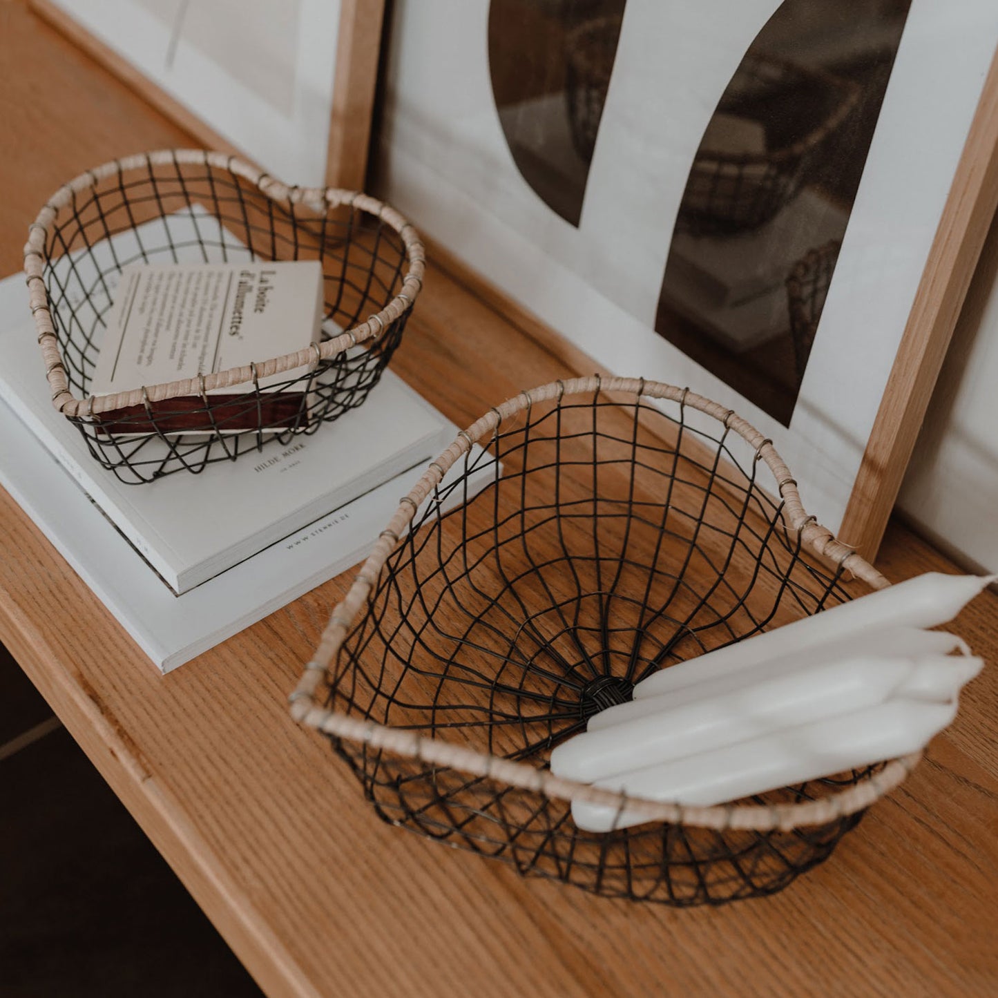 Es gibt zwei unterschiedlich großen handgefertigten Körben in Herzform.